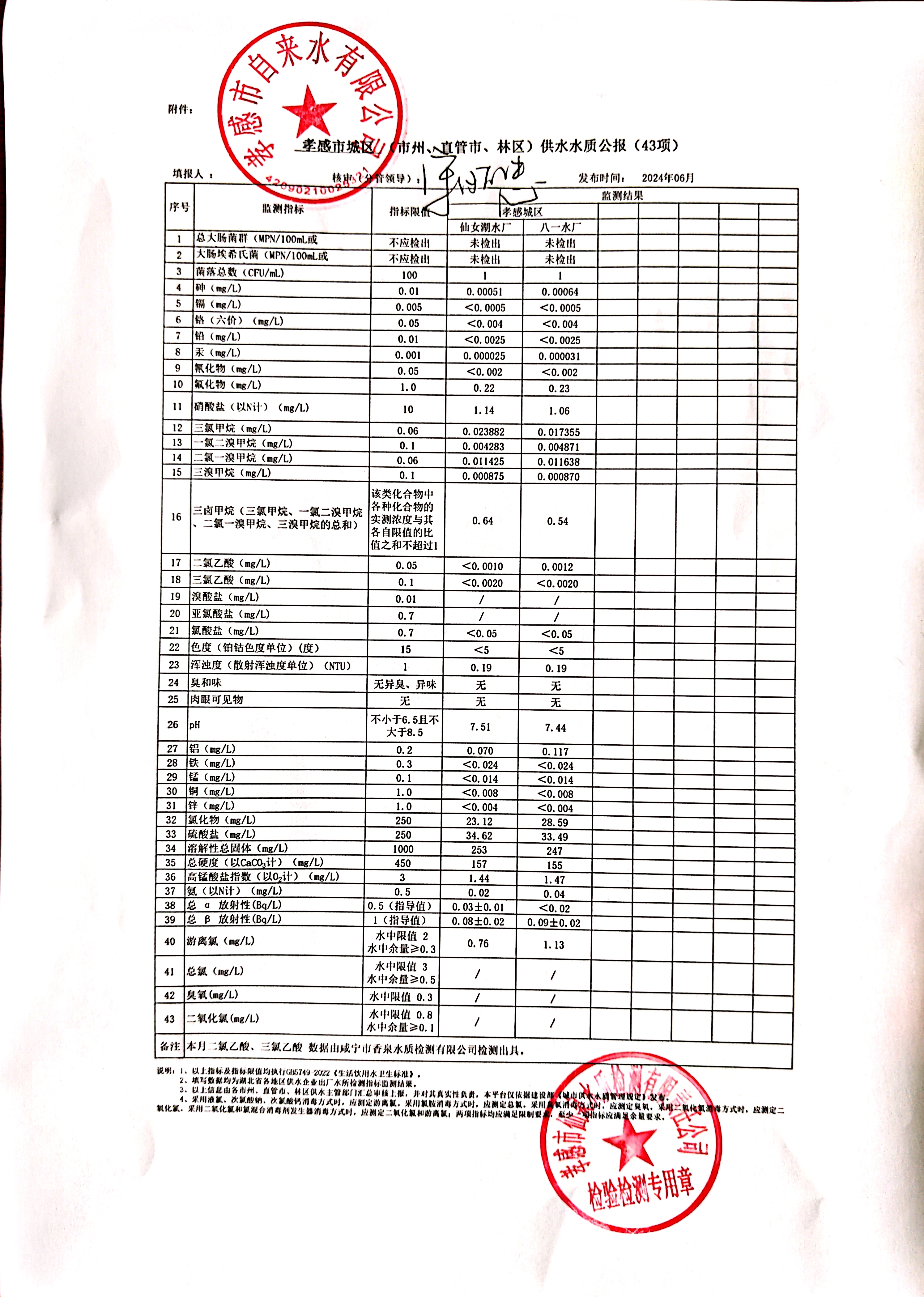 2024年6月水質(zhì)報告