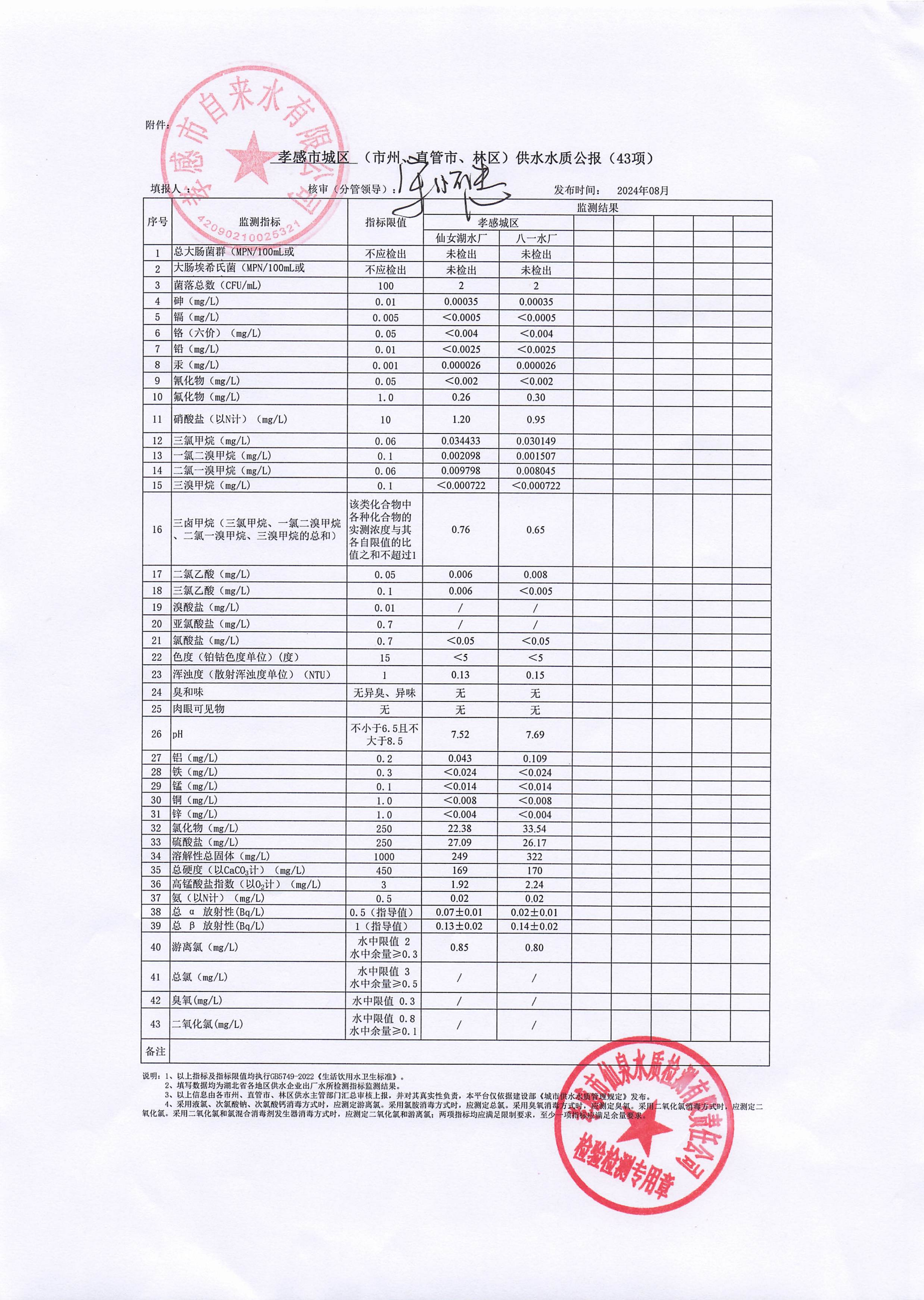 2024年8月水質(zhì)報(bào)告