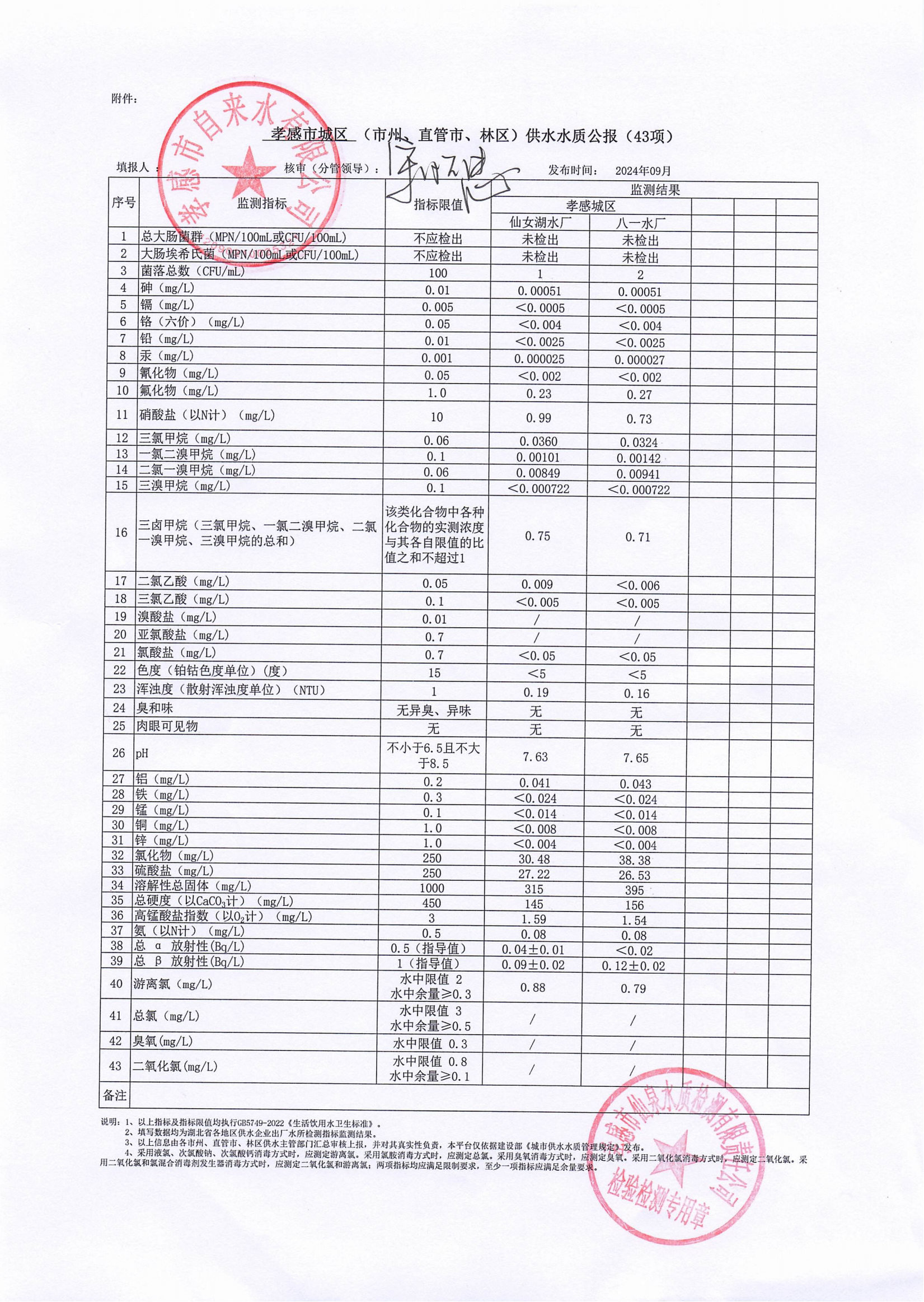 2024年9月水質(zhì)報告