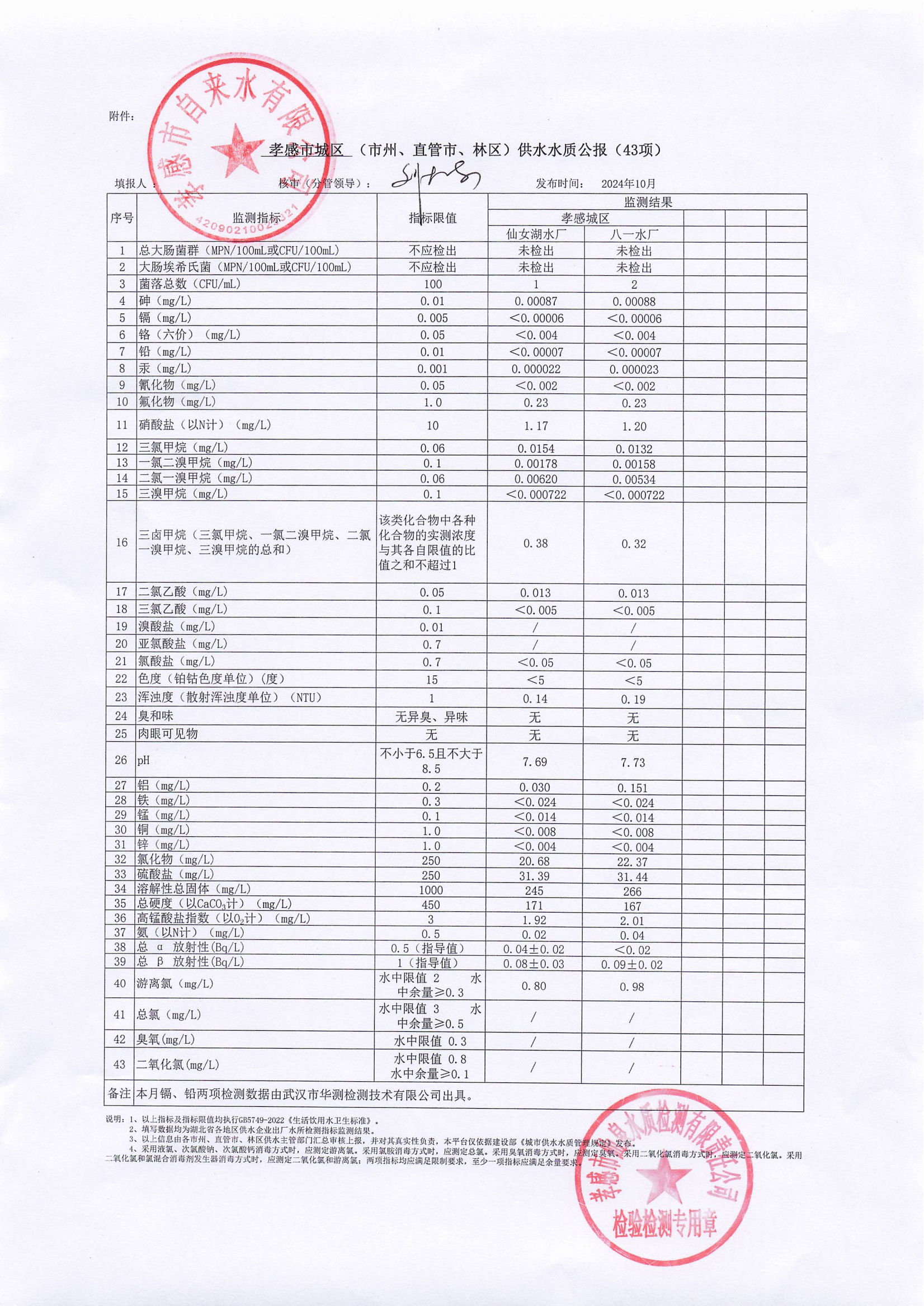 2024年10月水質(zhì)報(bào)告